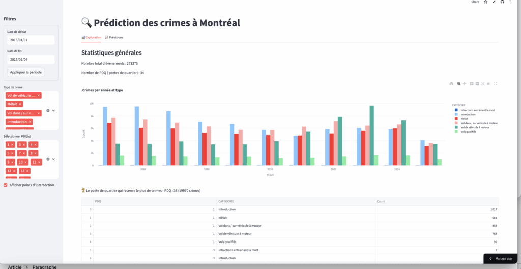 C’est cette curiosité qui m’a conduit à mener une expérimentation exploratoire : tester comment différents modèles de prévision peuvent être appliqués aux crimes recensés à Montréal.